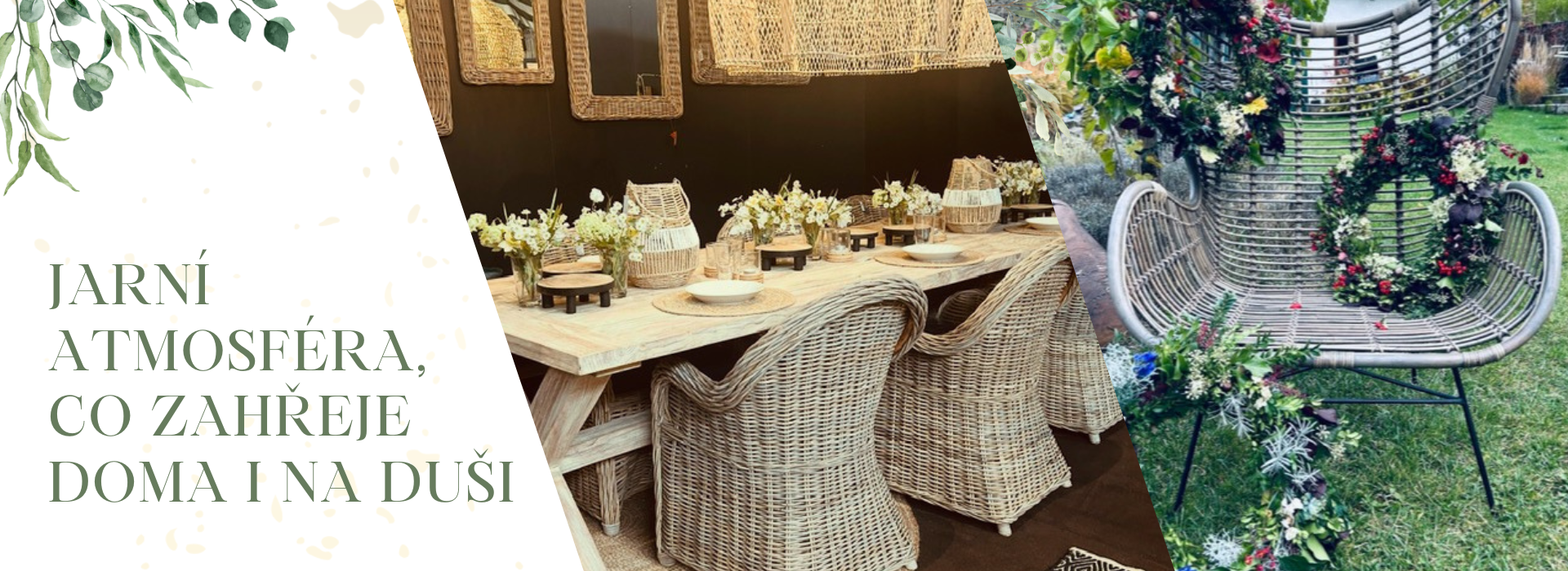 Ratanový nábytek, dřevěný nábytek a doplňky z přírodních materiálů.