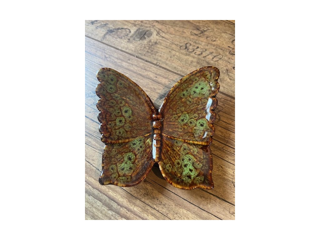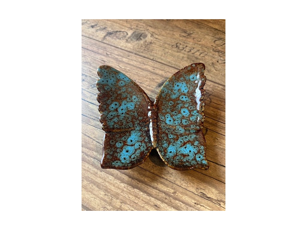 Motýl jako miska na prstýnky do koupelny nebo na noční stolek. Právě tak má motýl na zadní části pevný vytvarovaný úchyt a může se pověsit na stěnu. Sám nebo v hejnu.