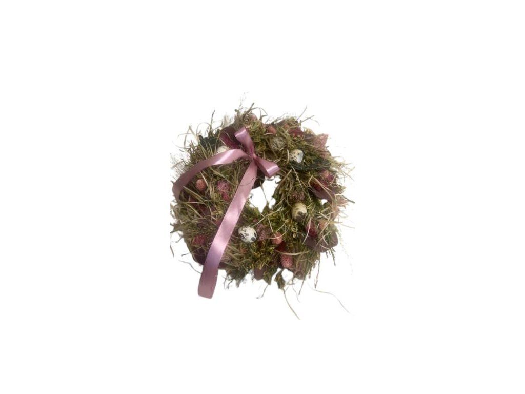 Není to jenom o Velikonocích, ale o přivítání jara, ať s nazdobenými dveřmi nebo vrátky. Věnce jsou nedílnou součásti oslav svátků. Tento je do starorůžového ladění, přidejte i jinou stuhu nebo kuřátko a může být pestřejší, pokud máte rádi více barev.