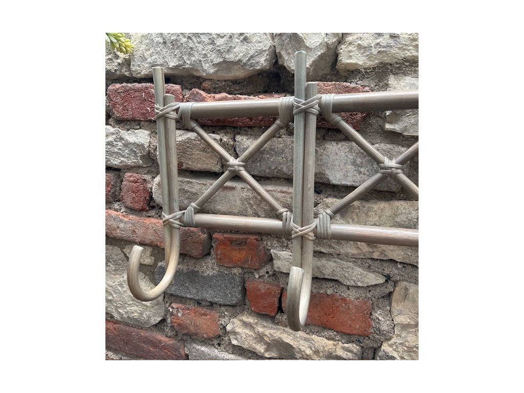 Retro věšák, jednoduchý, ale pevný je mořen do odstínu jemně šedé barvy. Rozměr: 70x14x35cm..
