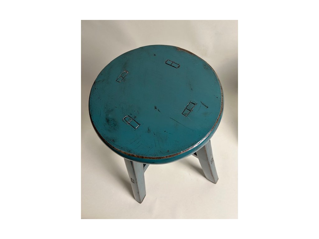 Dřevěná stolička kulatá mix/tyrkys