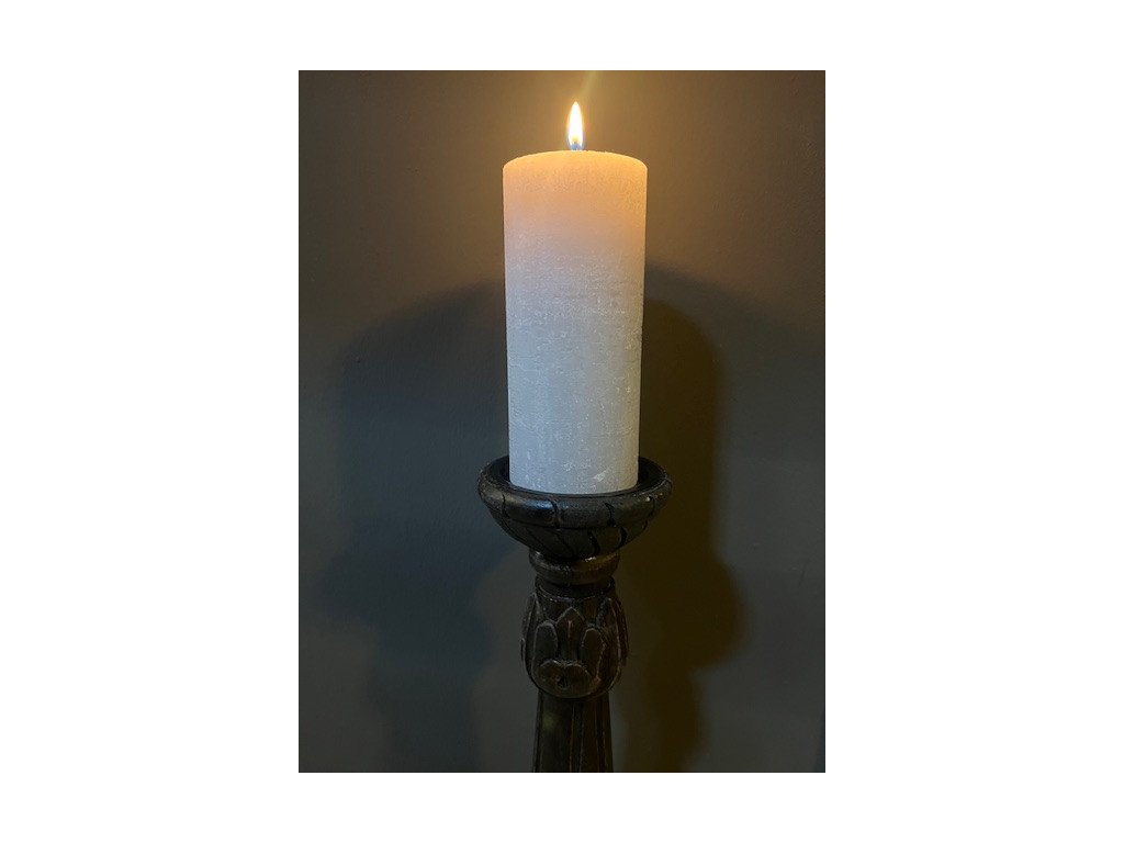 Krásný solitér, svícen, který doladí váš interiér, zádveří nebo nízkou komodu. Je vyšší, proto umístění do nižších poloh. Svícny této výšky působí velmi dekorativně ve vstupních halách. Vzhledem k tomu, že není svíčka chráněná proti větru, jako u luceren, umístění v zahradě nebo nekryté verandě nedoporučujeme. Dovoz Indie.