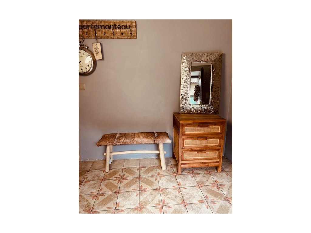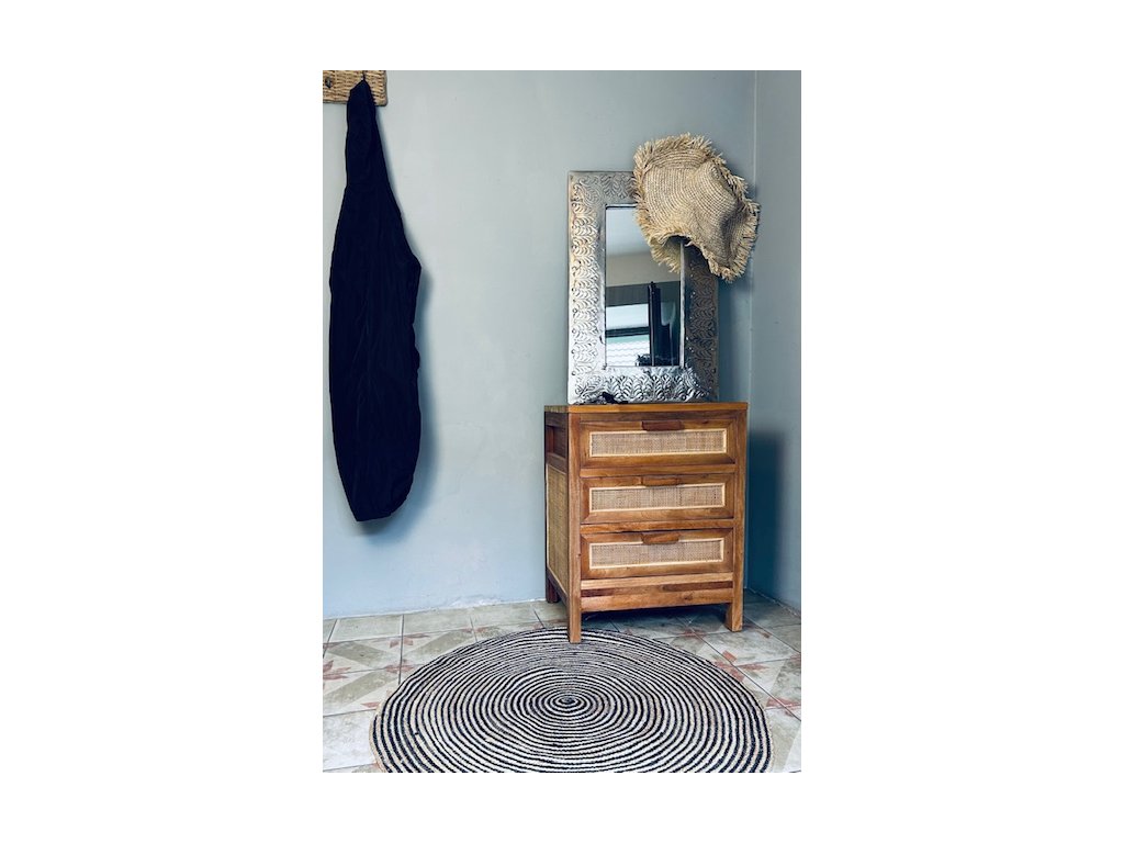Rozměry: výška 80x60x44 cm, kombinace mahagonového a teakového dřeva, výplet ratanová kůraDoplňkové parametry
