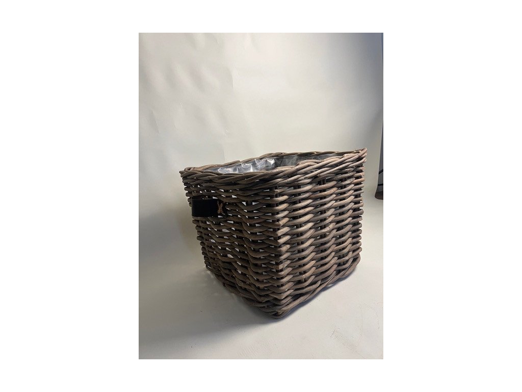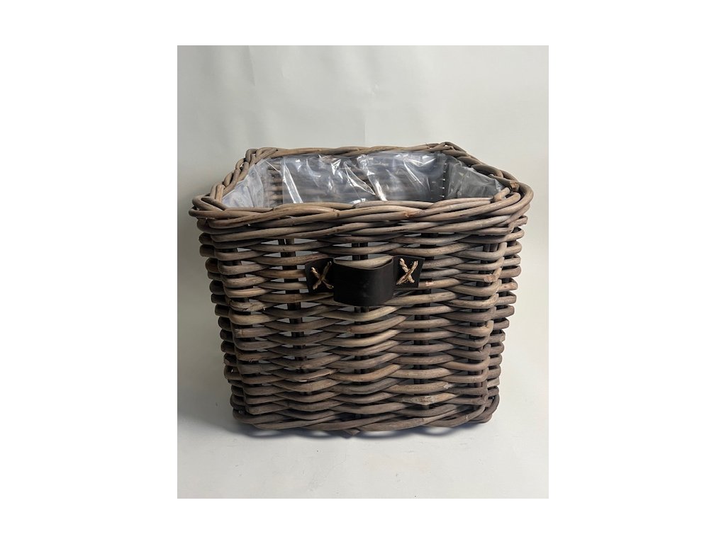 Tento koš je velmi nápadný krásným silným přírodním materiálem, který jsme zvolili. Kožená ucha po stranách jsou spíše dekorativní. Můžete ho použít nejen na vzrostlé kytky v exteriéru, ale i na dřevo, a pokud odstraníte folii ve vnitřní části, poslouží i velice dekorativně v interiéru na polštáře nebo deky, ve větších koupelnách na ručníky apod. Možnost dodání i jiných velikostí.