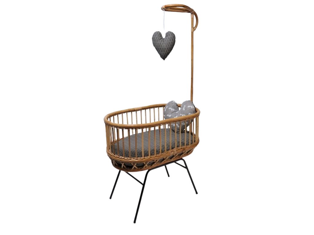 Rozměry: vnitřní: 80x48cm, vnější 88x55cm, celková výška postýlky 82cm, výška matrace 12cm. Kovové nohy. Materiál: přírodní ratan. K ratanové postýlce lze dokoupit i matraci se snímatelným povlakem na zip, součástí jsou 2 ks dekorativních polštářků ve tvaru srdce, pro radost. Snažíme se mít vždy skladem našité a to v neurčitých barvách (lze použít jak pro chlapečka, tak holčičku), na požádání vám nafotíme aktuální nabídku skladem. Později po odmontování nožiček lze použít jako koš na hračky. Naše matrace tvoří spolu s polštářky krásný celek, matrace je vyrobena na míru koše a vyplněna drceným molitanem, drží formu a je povlečena pratelným potahem. Je na vás, zda bude vašemu miminku stačit. Proto není matrace součástí postýlky, máte možnost volby.Doplňkové parametry