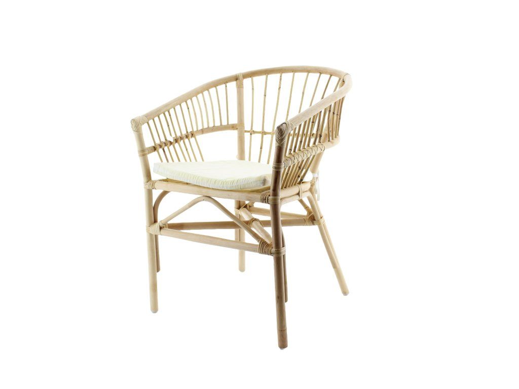 Ratanové křesílko s područkou a podsedákem, stabilní, pohodlné. Díky područkám můžete nechat spočinout volně ruce a relaxovat, s nižším stolkem nebo kolem jídelního stolu pro pohodlné posezení po obědě. Barva křesílka je přírodní, velmi světlá, vyzdvihuje krásu přírodního materiálu. Vázání křesla je jemné, rovněž přírodní.