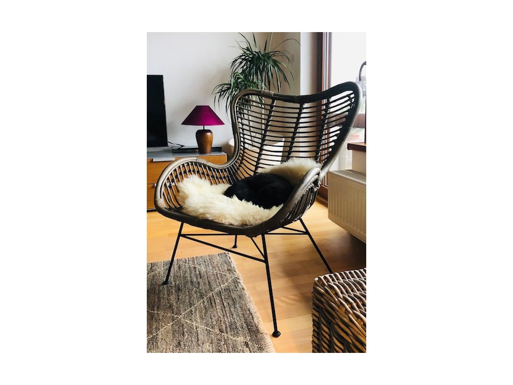 Rozměr: Výška sedu 38cm, šíře 69cm vč. opěrek, celková výška křesla 85cm, kovová podstava v černé barvě, velmi pohodlné křeslo. Dolaďte si své křeslo polštářky a dekou.