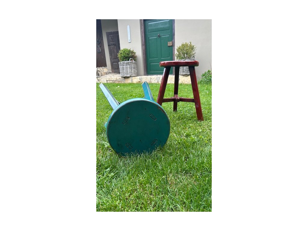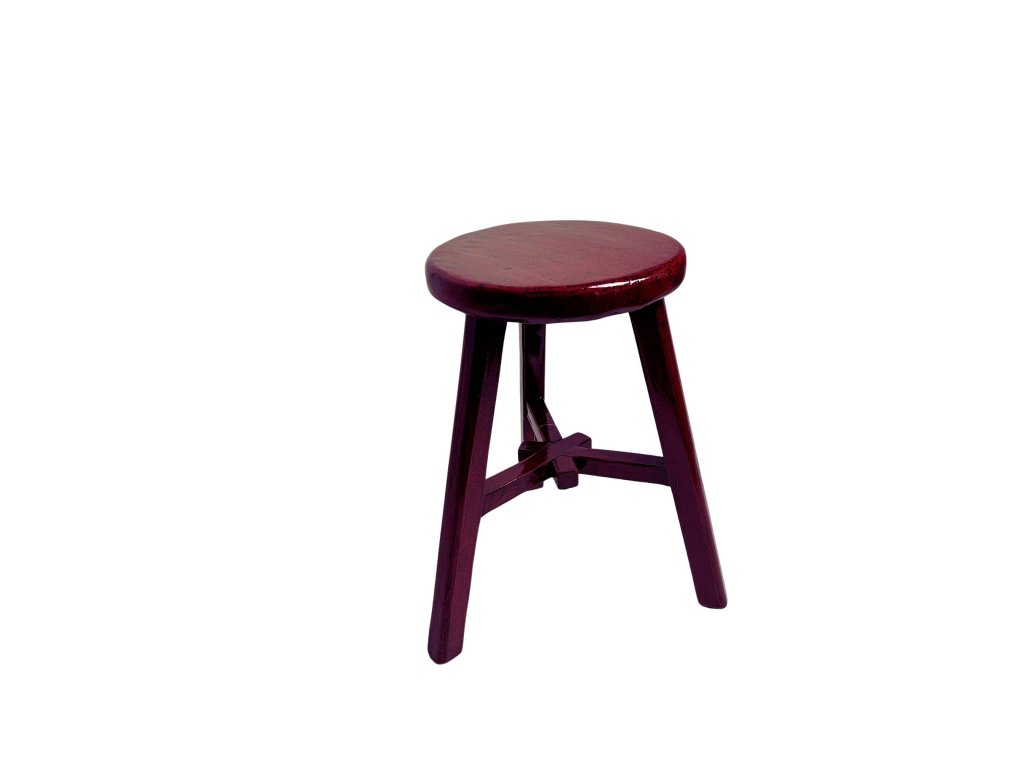 Velikost: výška je 50 cm, průměr sedáku je 30 cm, 3 nožka s křížem, stabilní.Barveno a lakováno.
