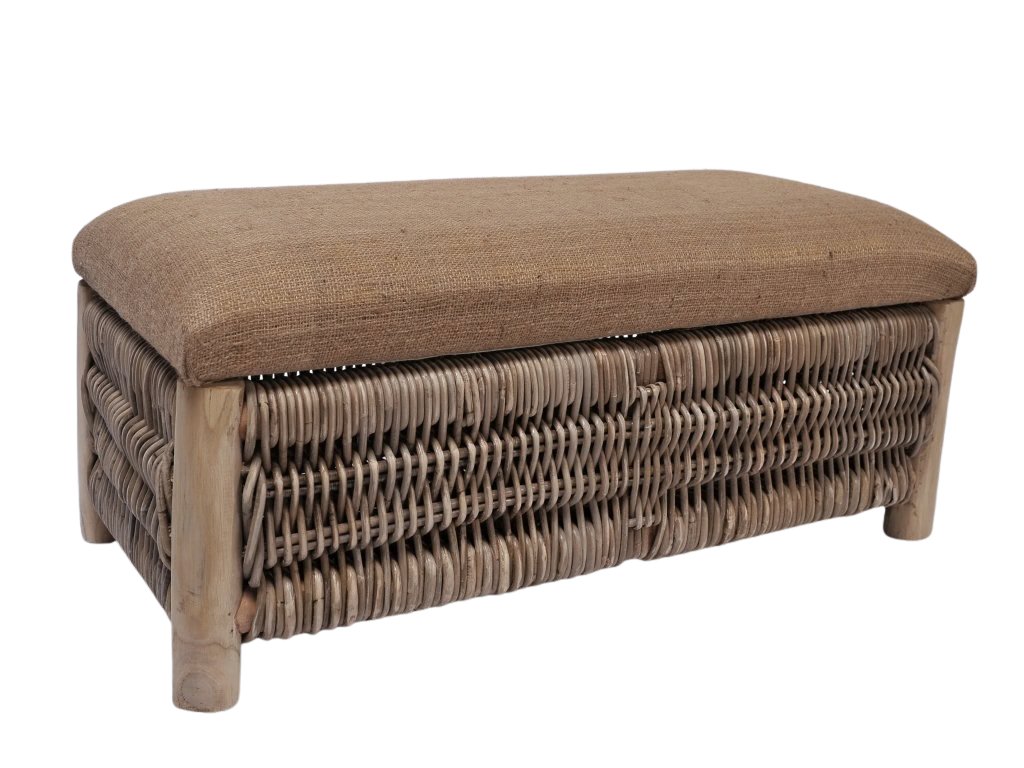 Truhla je zpracována z přírodního šedého ratanu kubu-plné nepůlené pruty, konstrukce je z kulatiny teakového dřeva v přírodním provedení. Rozměr: délka 76cm, výška 31cm, hloubka 36cm, pevná čalounická látka. Možnost přečalounění, piště, nabídneme látku. Produkt vyrábíme i ve větším provedení.