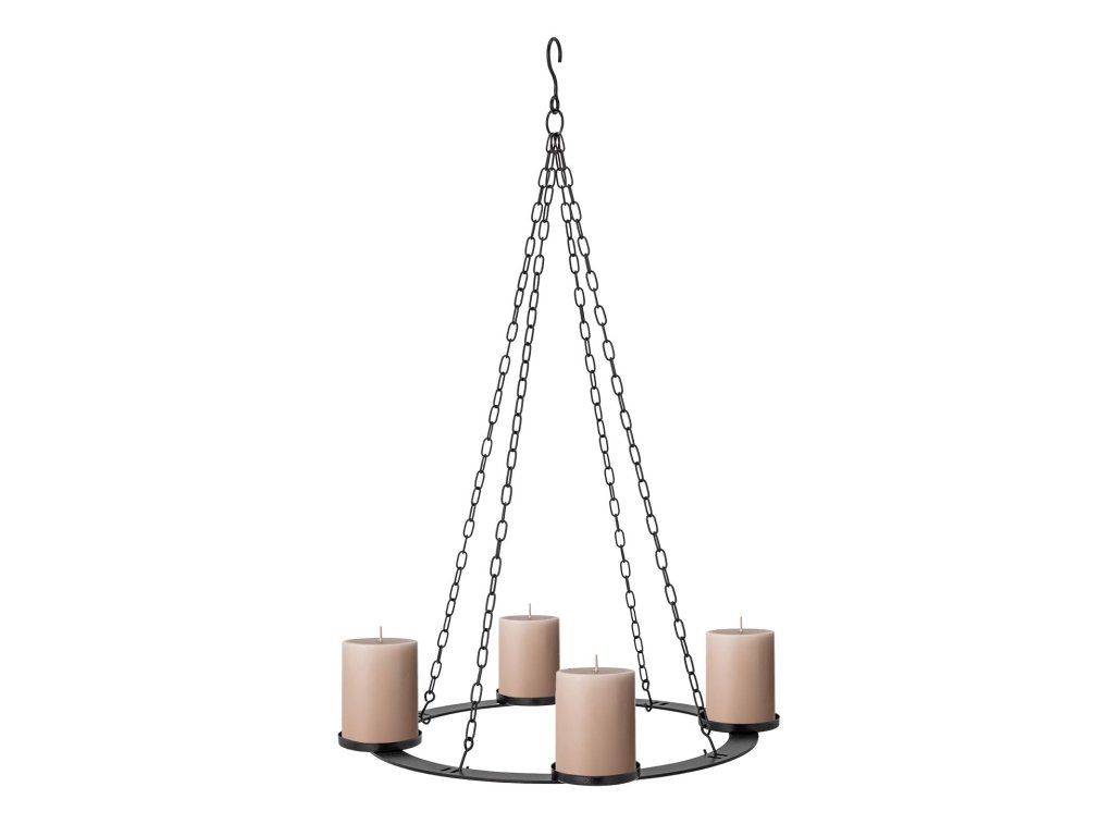 Rozměr: průměr 40 cm, délka 71 cm, pevný základ se čtyřmi nástavci na širokou svíčku, v černém kovuDoplňkové parametry