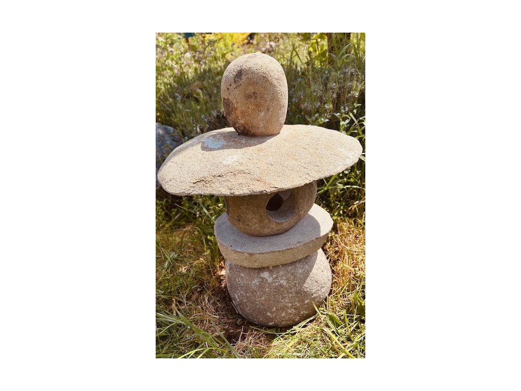 Novinka: lampa se skládá ze tří dílů do sebe zapadajících, největší je pevná a stabilní spodní část, následuje střed lampy a konečně zakončení v podobě stříšky s pevným jedním kamenem. Velikost je pouze informativní, každá lampa je jedinečná, ale velmi si podobná: Výška 53 cm, vrchní stříška 37 cm, nižší část 23 cm.