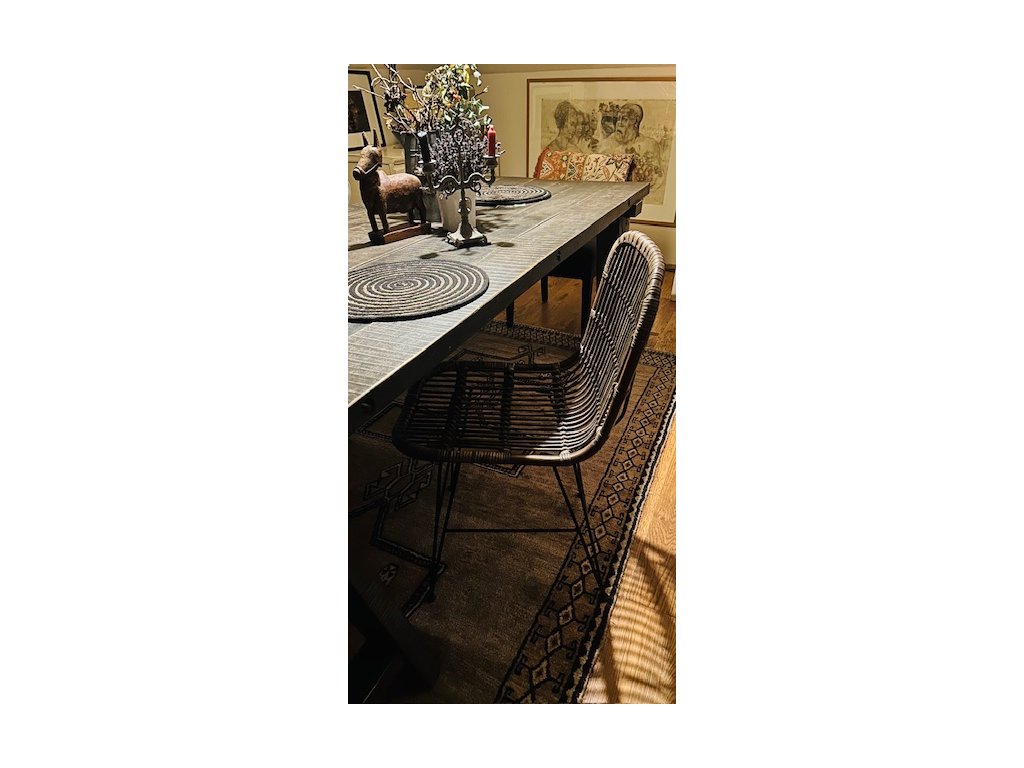 Subtilní pohodlná jídelní židle do menších prostor. Můžeme zhotovit podsedák podle vašich představ. Tuto židli jsme vyrobili pro zákazníky, kteří volí menší jídelní stůl vzhledem k místu. Židle je rovněž dekorativní k psacímu stolu, který je v obývací části interiéru. Vázání je světlejší než celek materiálu a to dodává židli zajímavý vzhled.